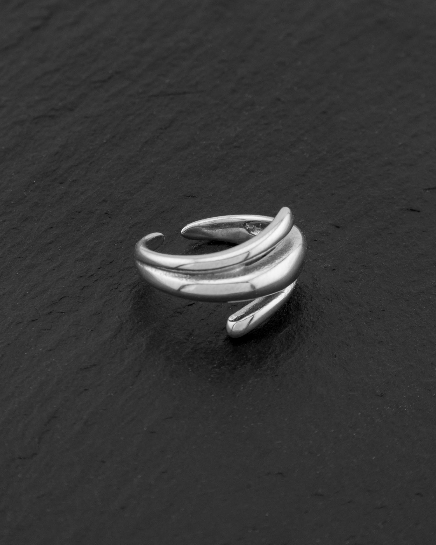 Το δαχτυλίδι από ατσάλι με σπειροειδές σχέδιο αγκαλιάζει το δάχτυλο με μία αίσθηση ροής και κίνησης. Ο διπλός κυματισμός του αποπνέει δυναμισμό, ενώ η minimal γραμμή του το καθιστά ιδανικό για καθημερινή χρήση.